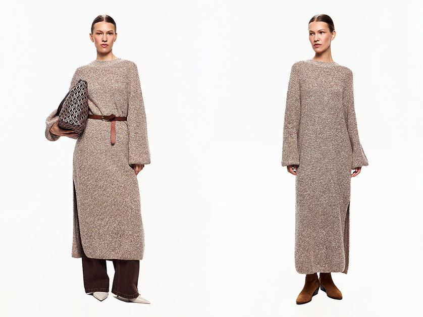 При виде словосочетания «вязаное платье» многие не могут освободиться от ассоциации с бабушкиным гардеробом. Но она моментально исчезнет, когда вы увидите это платье – элегантное, струящееся, с плавными линиями. Оно драпируется красивыми складками и может служить основой для разных по характеру образов. Например, его можно носить как в одиночку, так и с брюками. Получится действительно необычный и оригинальный лук. Но в любом случае сохранятся женственность, мягкость и комфорт, потребность в котором зимой резко возрастает.