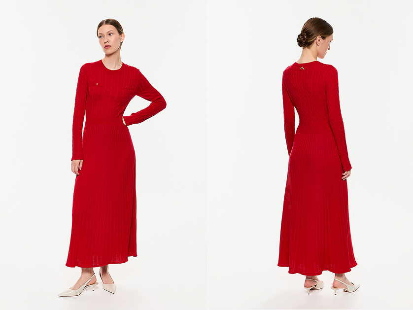 Если вы готовы к более смелым решениям, то еще одно вязаное платье точно не оставит вас равнодушной! Длинное, облегающее, насыщенного красного оттенка – оно не дает шансов остаться незамеченной! Такой предмет гардероба украсит владелицу и станет поводом для многочисленных комплиментов. Гармоничное сочетание красоты и комфорта. В нем вы точно не замерзнете, но при этом не придется отказываться от элегантности в образе. Достоинство, которым обладают обе модели, – максимальная уместность в офисе и соответствие деловому дресс-коду.
